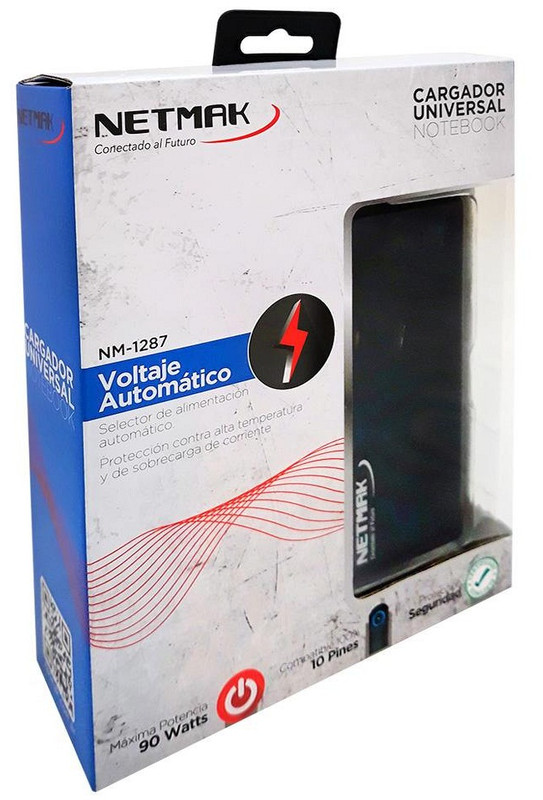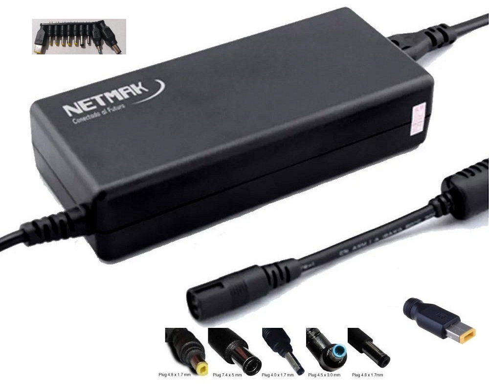 Cargador Automático Universal para Notebook 90W Netmak NM-1287 (incluye pin para HP y Lenovo)