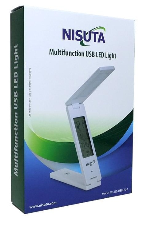 • Potencia: 2 watt CRI: 70, Lúmenes: 130 • Temperatura del color: 5000~5500k (fría) • Incluye batería de litio recargable de 1200mA • Incluye LCD, con hora, alarma de reloj, temperatura y calendario • Funciones: 100% brillo (manteniendo presionado el boton, va bajando la intensidad) • Cuerpo plegable, con cable USB de 1m • Tiempo de funcionamiento aproximado entre 3 y 8 horas