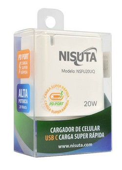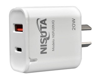 Cargador 220V de Pared a USB y USB Tipo C"PD" Nisuta para "5v,9v y 12v" NS-FU20UQ