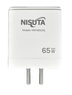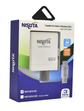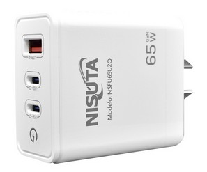 Cargador 220V de Pared a USB y X2 USB Tipo C"PD" 65watts Nisuta para "5v,9v,12v, 15v y 20v" NS-FU65U2Q |