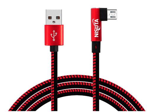 Cable micro USB de 1m de 2.4A con conector a 90° y malla de tela